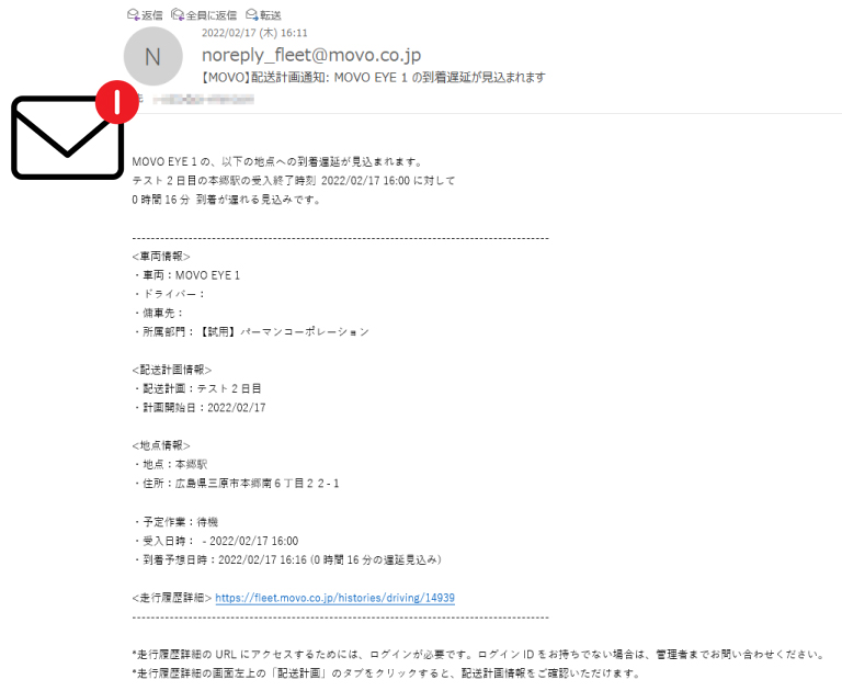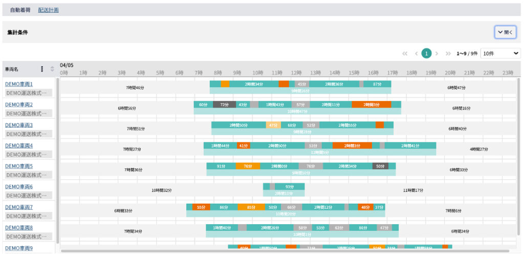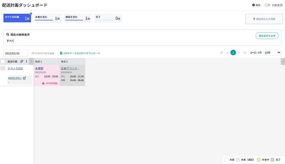 全車輛の到着時間や次の到着予定時間など、当日の配送状況確認