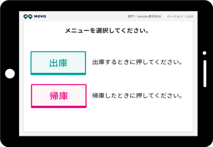 ドライバーが事務所や物流拠点で出庫・帰庫時間等を簡単に記録し、運転日報記載の手間を軽減