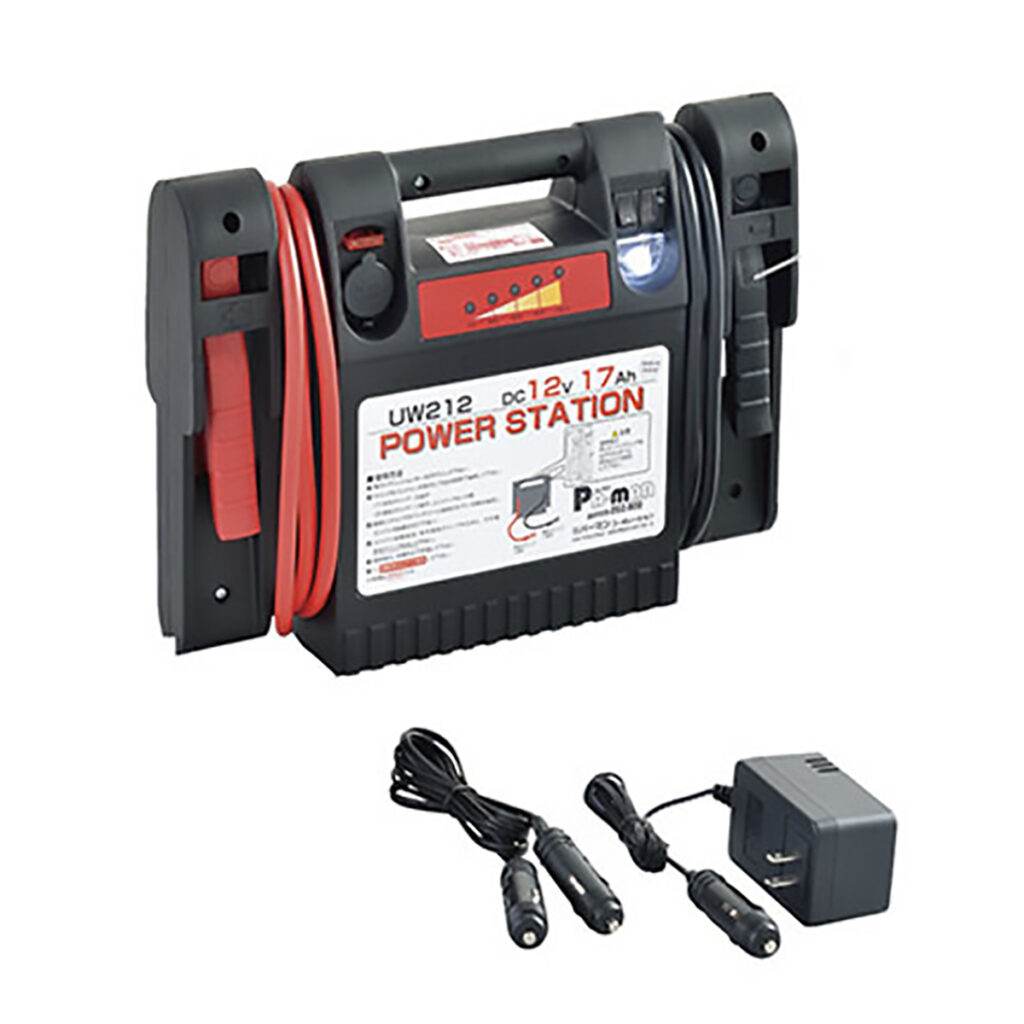 「パワーステーション(ジャンプスターター)」は、自動車のバッテリーが上がった際に使用する 携帯型エンジン始動補助機 です。