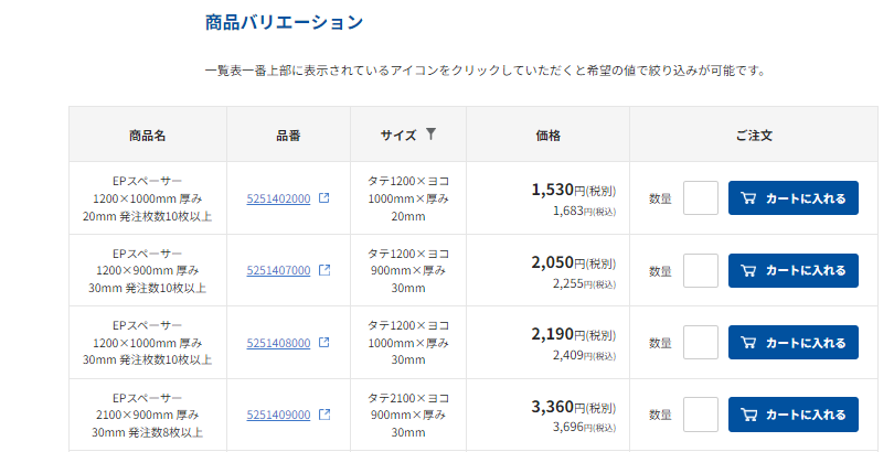 主力商品であるベルト荷締機(ラッシングベルト)やEPスペーサー(トラック用緩衝材)、各種トラックバッテリーなどサイズや形状が異なる製品ラインナップを一つの商品ページで比較検討できる機能を追加することで効率的なお買い物をサポートします。