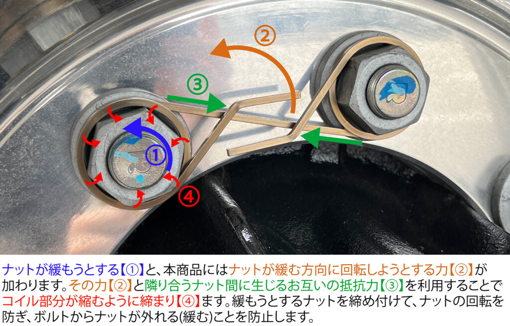 ※本商品はナットの緩みを防ぐことを目的としていますが、道路運送車両法に基づく日常点検・整備義務を不要とするものではありません。