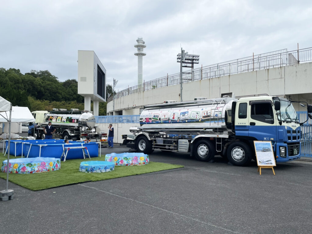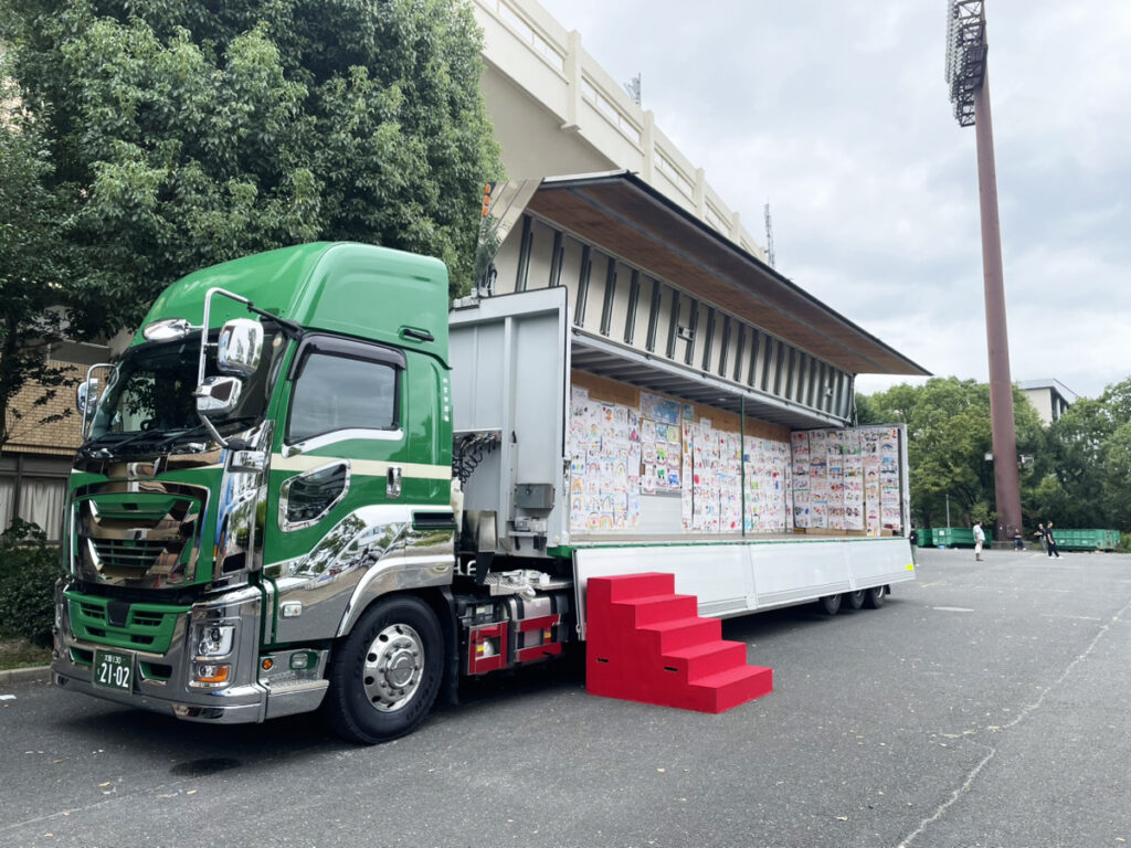ステージでは吹奏楽や和太鼓のパフォーマンスがあり、トラック業界らしく、こどもたちのイラストがラッピングされたトラックもずらりと並び、イベントならではの光景に来場者も興味津々。
